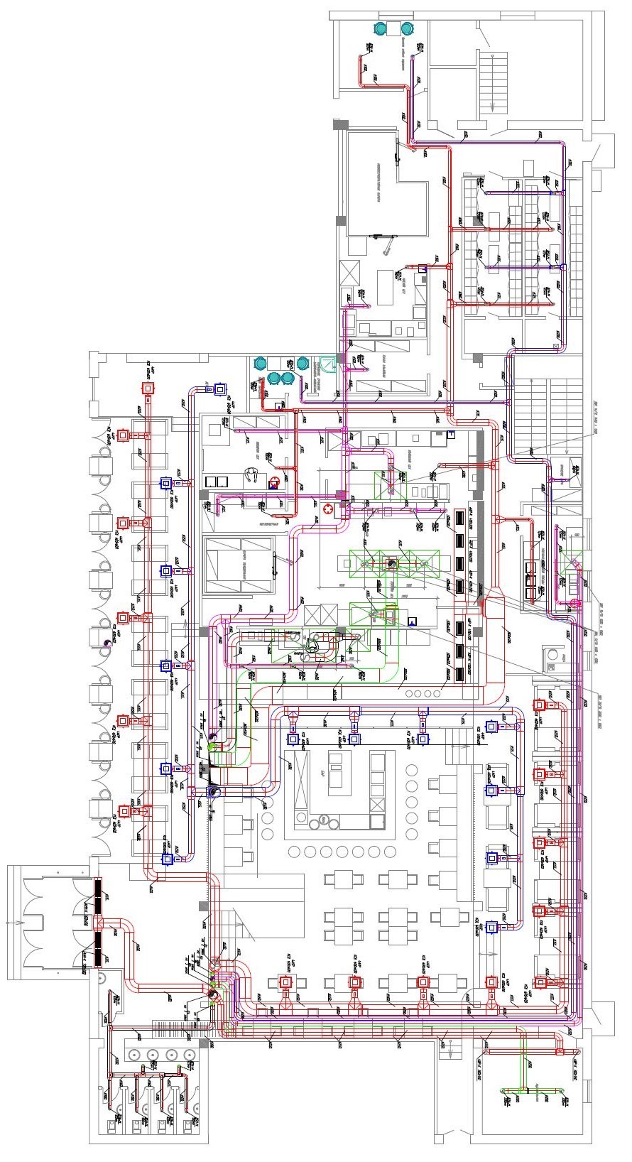 Компания GastroNorma проектирование основных инженерных сетей на объекте, таких как вентиляция и кондиционирование, водоснабжение и канализация, электрооборудование и слаботочные сети.